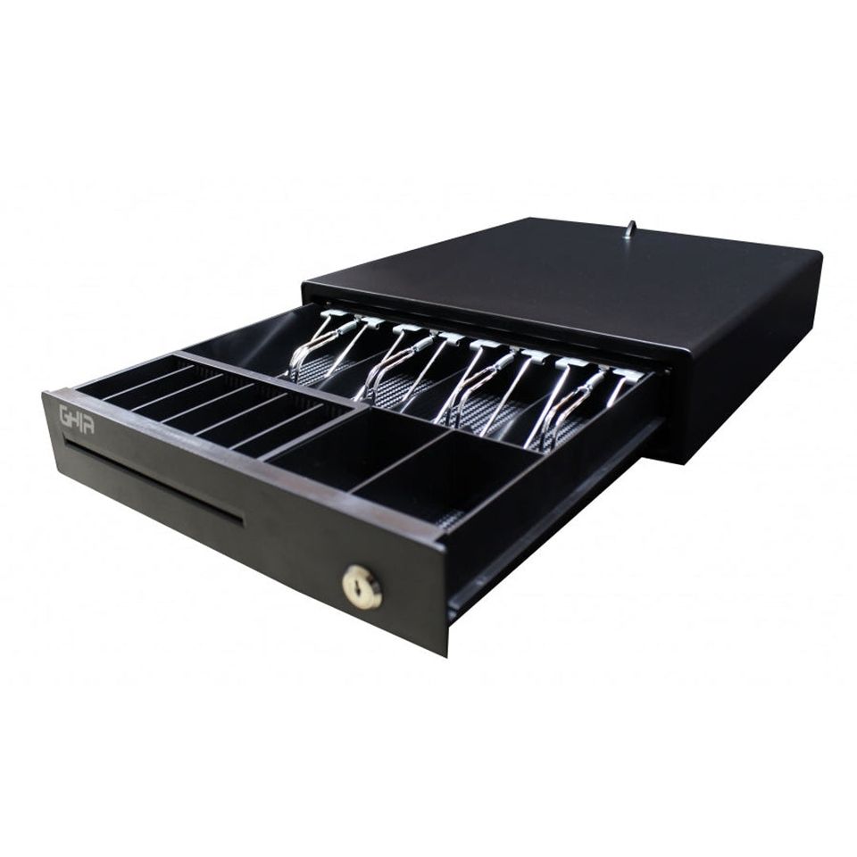 🔹 Cajón de dinero: Diseño robusto con 4 compartimentos para billetes y 5 para monedas, asegurando organización y seguridad.